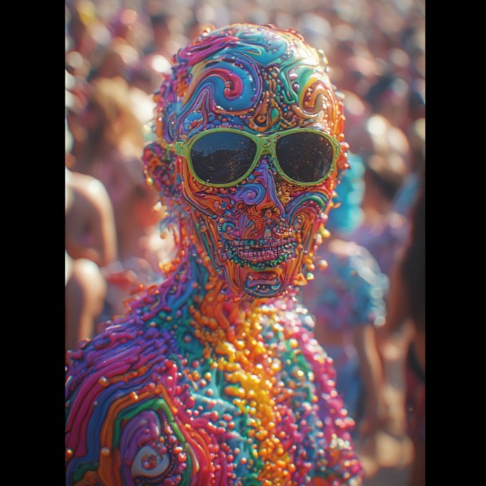glitch hop, electronic pop, male vocals, slow, trippy, dub, trip-hop, psychedelic, acid house, weird, experimental, fun, playful, cartoony