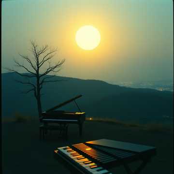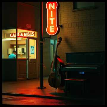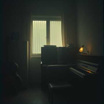Tender La La Land–inspired lo-fi waltz at 86 BPM, 3/4, C minor, Male or female vocal range unused; focus on intimate piano lead over upright bass pulses and soft brush kit, Tape-warmed keys with gentle wow and flutter, vibraphone doubles key melodic peaks as a shimmering halo, Form follows intro 12-bar solo piano, A section with full trio plus vibraphone colors, B section adds airy string pad for a subtle emotional lift, then a softer A2 with reduced dynamics, Constant low-level rain room tone and slow filter ride create a breathing, background-friendly mix with no sharp transients and a long, lazy fade, lo-fi, warm, tone, harmony