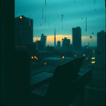 Warm cinematic lo-fi bed with mellow tape haze; lead vibraphone trades short phrases with soft felt piano over a steady brushed kit and lazy upright bass pedal, Distant rain and traffic hum glue the air together, while extended jazz-ish voicings drift through a relaxed A–B–A2 song form and a gradual, almost imperceptible fade; perfect for late-night shots of a quiet city, drone, lo-fi, tone