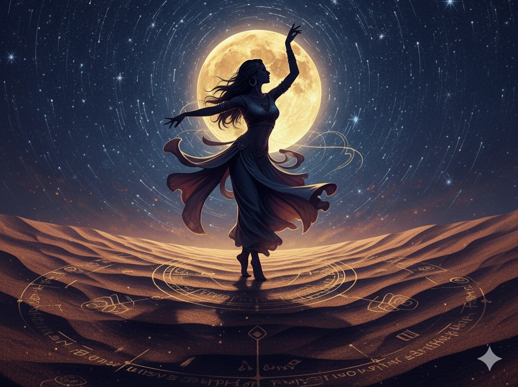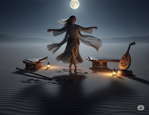 Calm, Hypnotic Ethno-Pop, Female Vokals, Ney flute, Kanun, and Oud melody, The rhythm in the verses is slow and deep, In the chorus, the tempo slightly increases, and the beat becomes more danceable, with a more prominent bassline and complex percussion (tabla and darbuka), The vocal, with echo and reverb, like a whisper in the desert, is complemented by soft backing vocals, In the middle of the song, an emotional, solo string melody appears, The overall relaxing rhythm invites both dancing and meditation