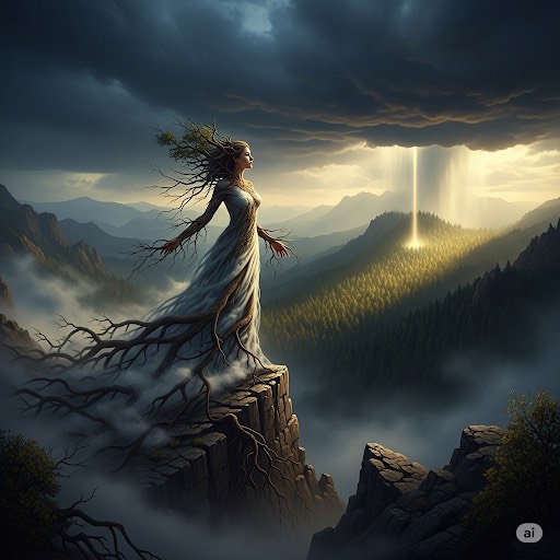 An epic, dramatic Alternative Rock song with a dark and mysterious mood, The instrumentation features powerful tribal drums and dramatic strings, The vocals are a blend of operatic and raw female vocals Natalie with layers of tribal chanting, The overall feel is grand, ancient, and powerful, capturing a journey of finding inner strength