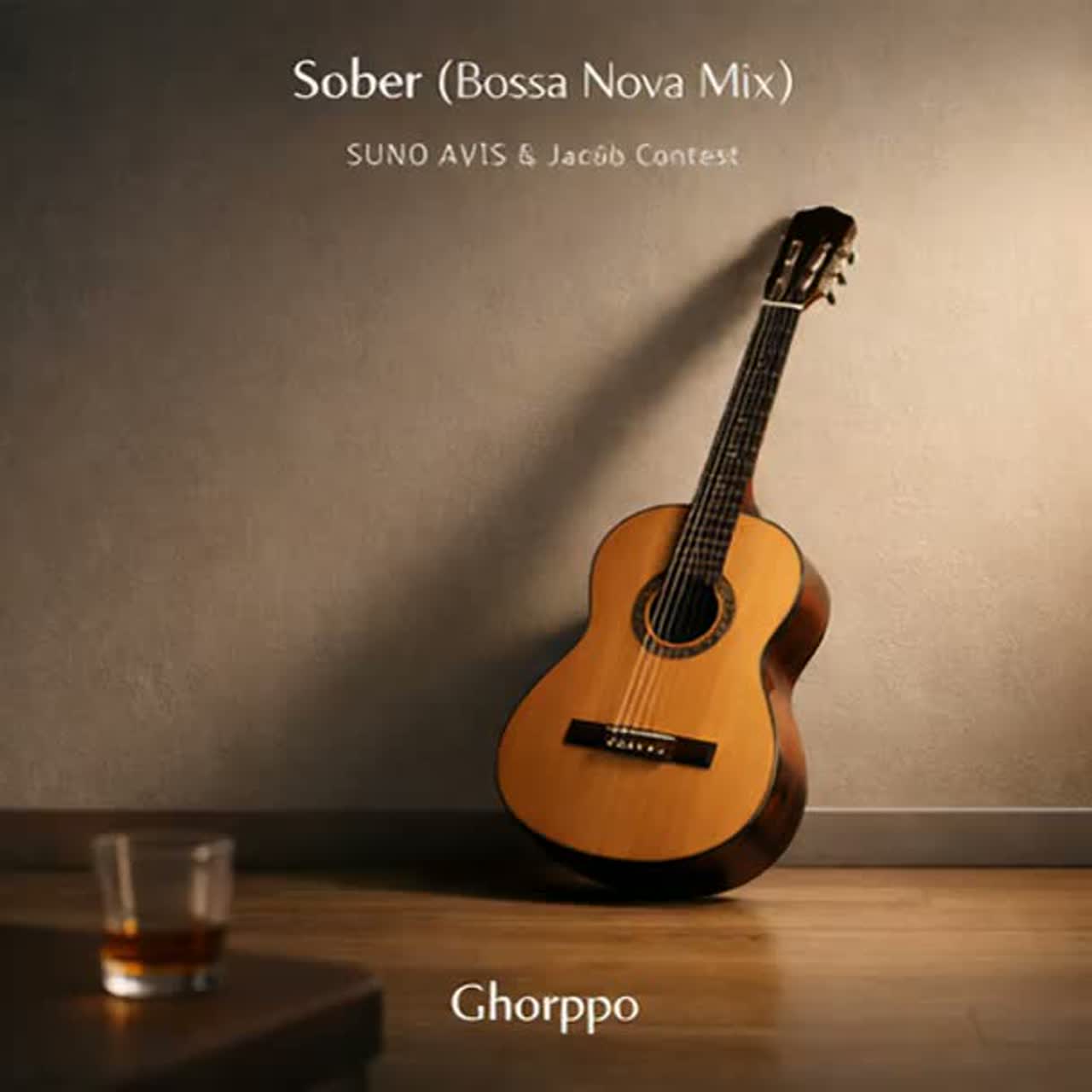 Intimate live bossa nova performance, solo voice and nylon-string acoustic guitar only, no additional instruments, Extremely soft, close-mic male vocal at whisper-level dynamics, understated and breathy delivery, subtle vibrato, conversational tone, emotional restraint, economy of expression, no dramatic peaks, Phrasing slightly behind the beat with subtle rhythmic suspension, Minimalist syncopated samba guitar pattern with precise right-hand rhythm, gentle fingerstyle, complex but delicate jazz-influenced extended harmonies (9ths, 11ths, 13ths), smooth voice-leading, understated chord transitions, Microdynamic control throughout, very controlled dynamics, focus on silence between phrases, Dry mix, almost no reverb, natural small-room ambience, audible breathing and subtle finger noise, warm analog tone, intimate late-night atmosphere, No embellishments, no vocal runs, no backing vocals, no tempo fluctuations, Refined, introspective, romantic mood, 72–88 BPM