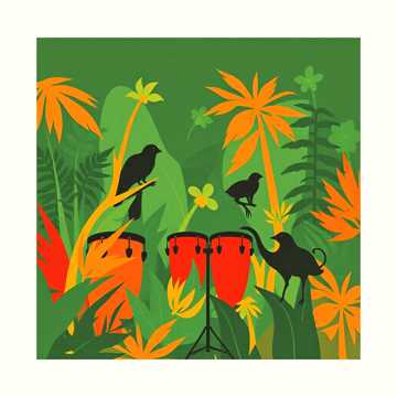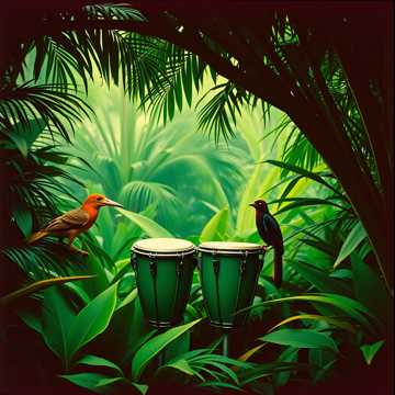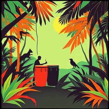 tribal and lots of congas layered percussion big harmonies, classic african style