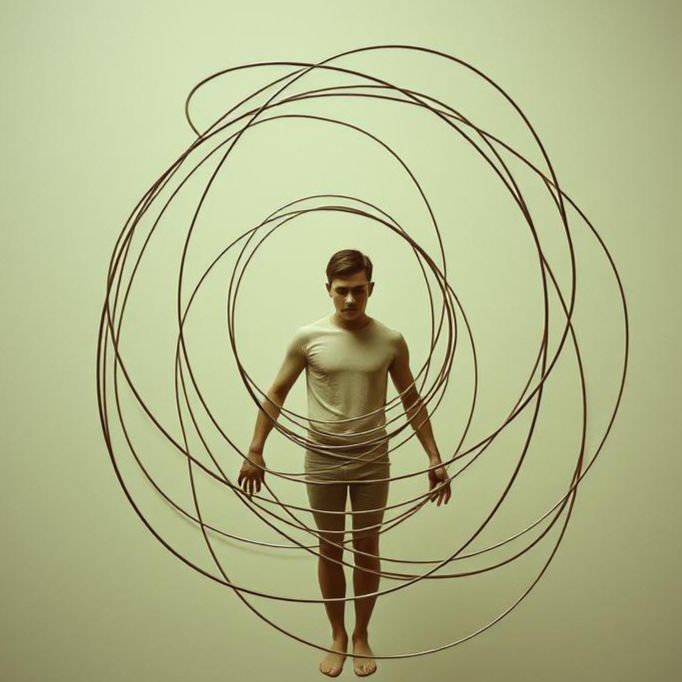 Cool-toned, low male vocals with flat, weary delivery — emotion suppressed, phrasing deliberate and steady, Voice processed with light chorus, mild compression, and diffuse reverb; sits within the mix rather than on top, Style blends futurepop and ambient electronica: clean, glassy synth layers, muted pads, occasional digital artifacts, and soft sub-bass swells, Percussion sparse, 808-inspired but subdued; steady without groove emphasis, Harmonic progression minimal and cyclical, unresolved but comforting, Texture alternates between clarity and mild distortion, evoking mechanical calm and emotional fatigue, Mood: detached, reflective, beautiful in its resignation — like watching yourself reboot