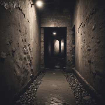 Classic Italian style music accents blended with glitch and dark synthpop, Use low, brooding baritone vocals with a cold, narrative tone, Build an oppressive, echoing underground mood that feels ritualistic, intimate, and haunting