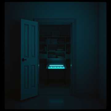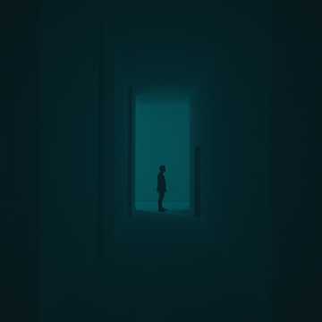 Create an intensely dark industrial synthwave track with a brooding low-baritone lead vocal, Verses should feel claustrophobic with detuned pads, unstable pitch bends, whispered textures, and glitchy pulses that never fully resolve, Use slow, heavy electronic percussion that feels like footsteps in an empty room, Add subtle distortions, reversed breaths, and fractured synth motifs that mirror losing one’s grip on reality, Let the chorus widen slightly with a hollow, echoing melodic lift, For the outro, soften into trembling ambient chords with a faint hopeful shimmer beneath the darkness