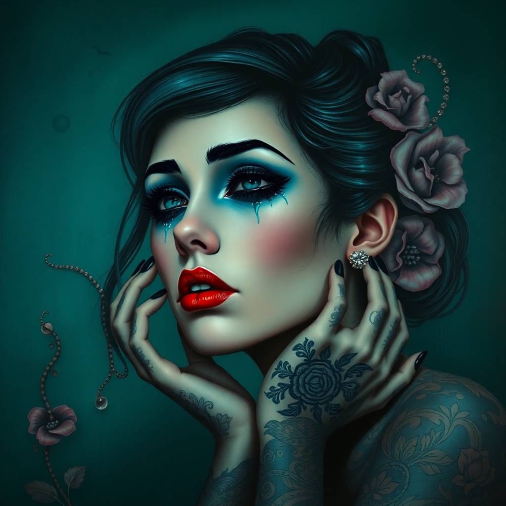 female emo a moody foundation, accented by sparse, minimalist beats and atmospheric pads in the verses, Haunting, soulful male vocals cut through raw, textured production, Choruses swell with distortion, layered dark emo elements, southern rock alternative