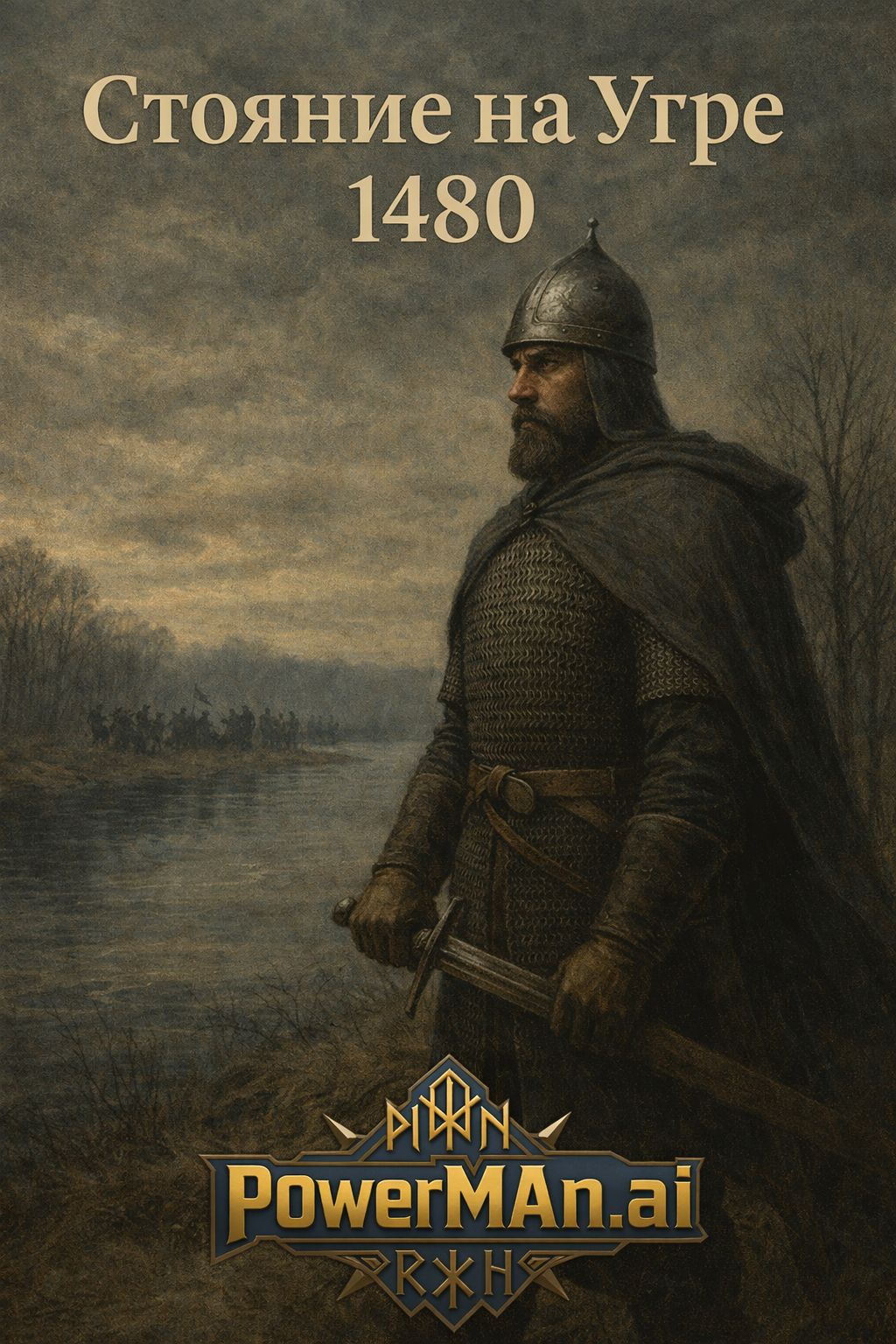 Long-form epic symphonic metal ballad about the Standoff on the Ugra River in 1480 and the end of Mongol-Orda dependence, Slow cinematic orchestral intro, gradual build over multiple verses, Heavy guitars enter after first chorus, Extended instrumental breaks with orchestra, choir, and guitar solos, Atmosphere of tension, dignity, inner strength, historical inevitability, No fantasy elements, No modern references, Victory through endurance and willpower, not battle, Final chorus is massive and triumphant, outro calm and reverent