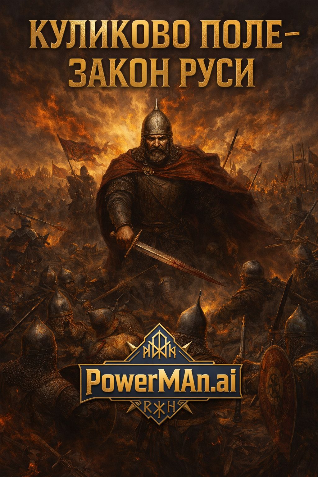 Epic symphonic metal war anthem about the Battle of Kulikovo (1380), Prince Dmitry Donskoy leading united Rus into decisive battle, Mood: dark, aggressive, monumental, apocalyptic yet triumphant, Tempo: slow ominous intro → fast brutal battle → massive slow choral finale, Heavy distorted guitars, thunderous war drums, deep percussion, full orchestra (strings, brass), massive choir, medieval textures (bells, horns), Structure: atmospheric intro → explosive drop → alternating battle verses → huge choir chorus → dark ritual breakdown → second heavier wave → final climax, Vocals: deep male lead, multi-layer choir, battle chants, call-response, Languages: Russian (main), Lithuanian, Crimean Tatar, Ruthenian, Themes: total war, unity of Rus, Mamai’s army collapsing, cavalry clashes, shields breaking, earth shaking, fate decided in battle, Energy: relentless, crushing, overwhelming, Duration: ~7 min, epic final удар