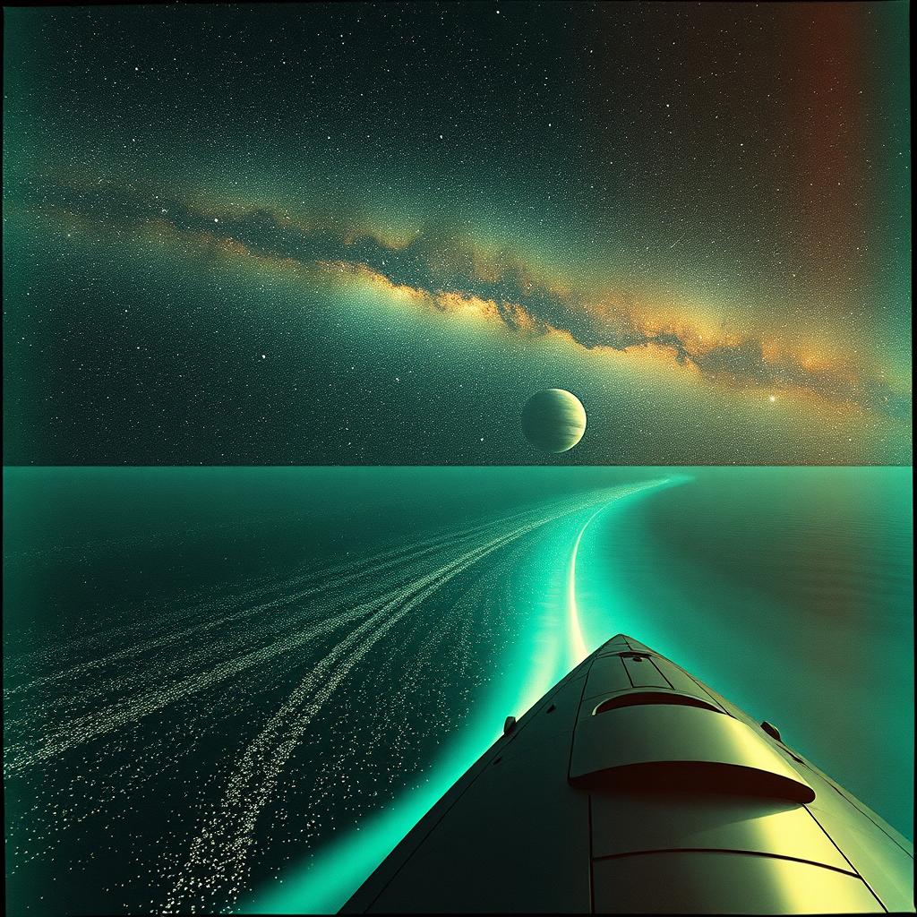 Long modern progressive rock suite composition structured in multiple parts with space rock accents, The guitar plays a central role, characterized by sustained notes, expressive bends and a recurring four-note motif enhanced by delay, reverb and compression, Slide guitar adds to the ethereal atmosphere, while the use of clean tones and precise phrasing contributes to the emotional depth, Virtuoso keyboards like the ARP Solina, Minimoog and Hammond organ enrich the harmonic backdrop, The rhythm section is composed by 432 Hz ultra bass and precision hard-rock drums with deep tom-heavy grooves and heavy offbeat hi-hat accents, The production relies on multitrack layering and spatial effects to create a spacious and immersive soundscape, THIS SONG IS VERY LONG!, ‑Short Song, ‑Cinematic, ‑Classical, ‑Progressive metal, ‑Power metal, ‑Black metal, ‑Pop, ‑R&B, ‑Indie, ‑Dance, ‑Chillout, ‑Folk, ‑Country, ‑Blues
