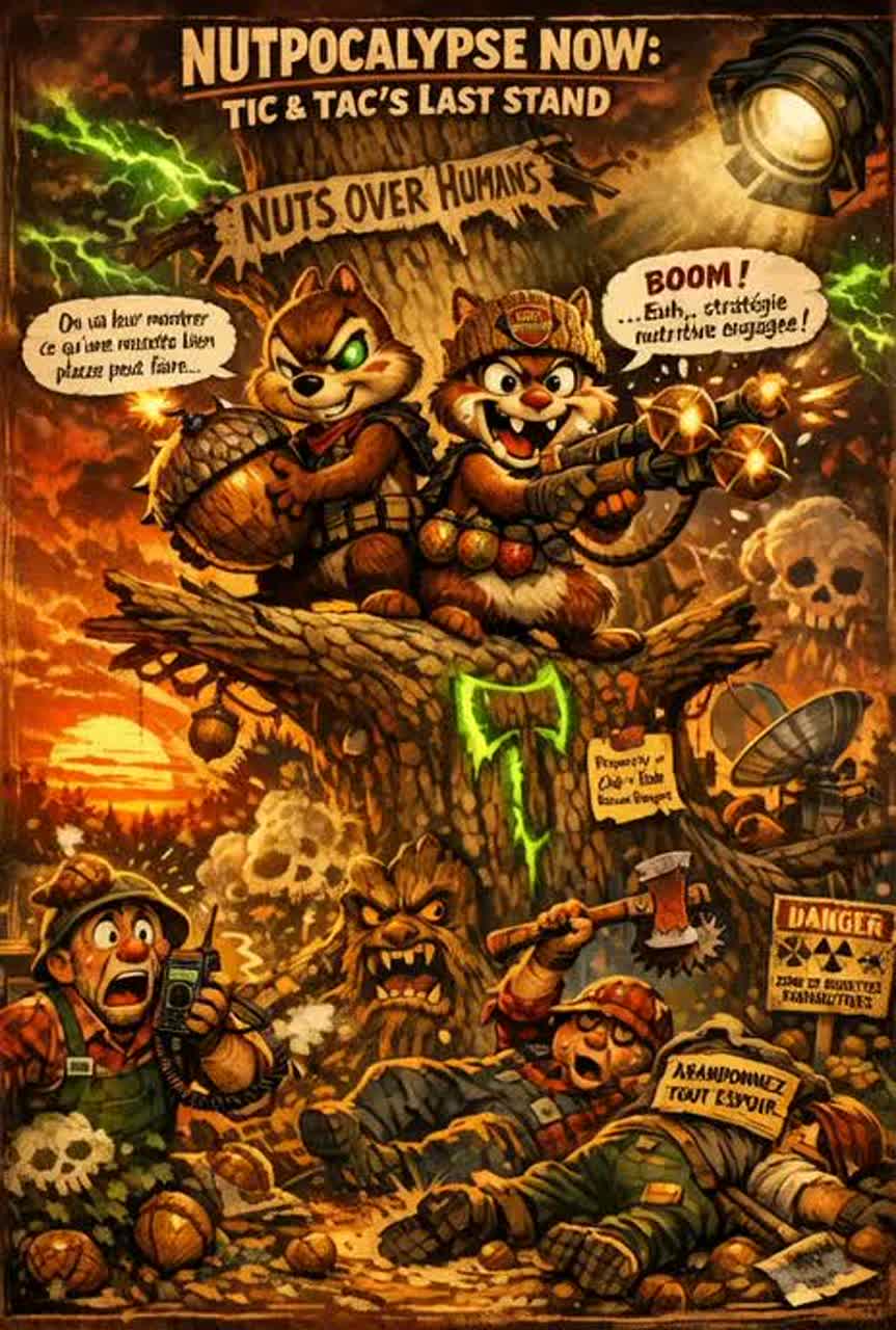 A frantic electro-swing and dark folk fusion where jazz manouche guitars (tape delay + light phaser) clash with wobble bass (50Hz sine + 110Hz LFO) and bitcrushed brass (12-bit, sidechained to kick)