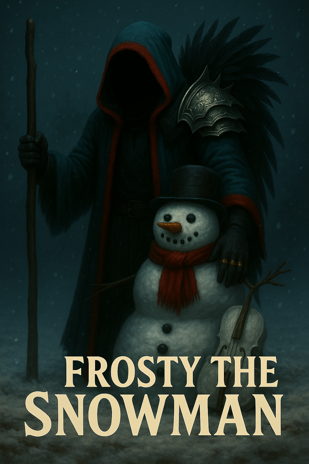 PERFORMED BY SLEEP TOKEN (Leo Faulkner), Christmas cover, “frosty the snowman”, sleigh bells, Christmas, alt-metalcore, dark-pop, modern alt groove, punchy hybrid drums, rhythmic piano stabs, warm driving bass, clean emotive breathy WHITE BRITISH male vocal, silky belting with low breathy vibrato