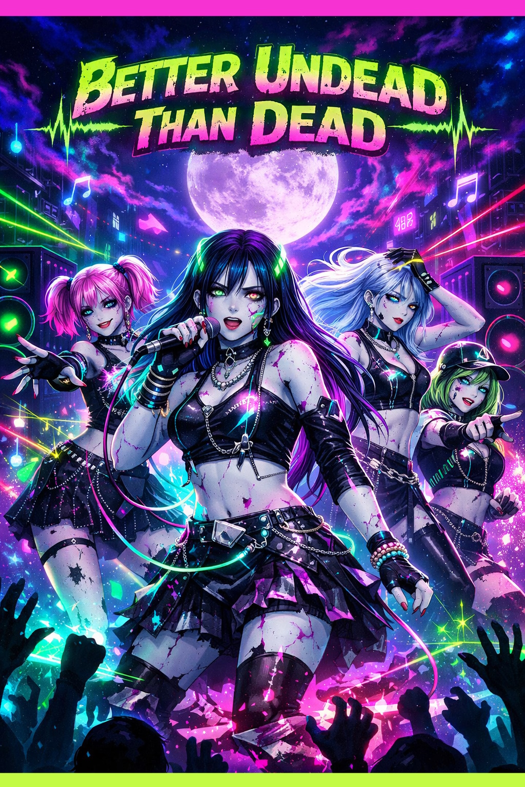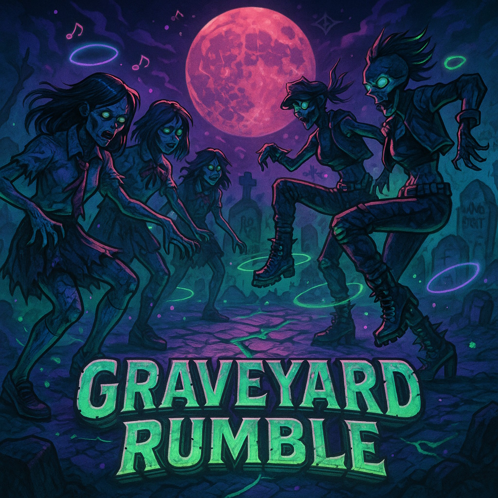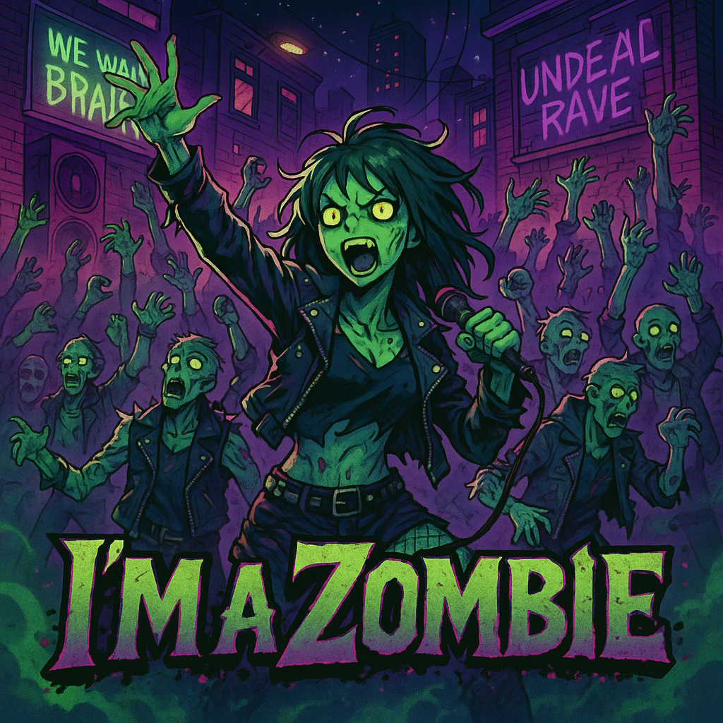 Mood: undead party anthem, neon chaos, fun, wild all-night rave energy