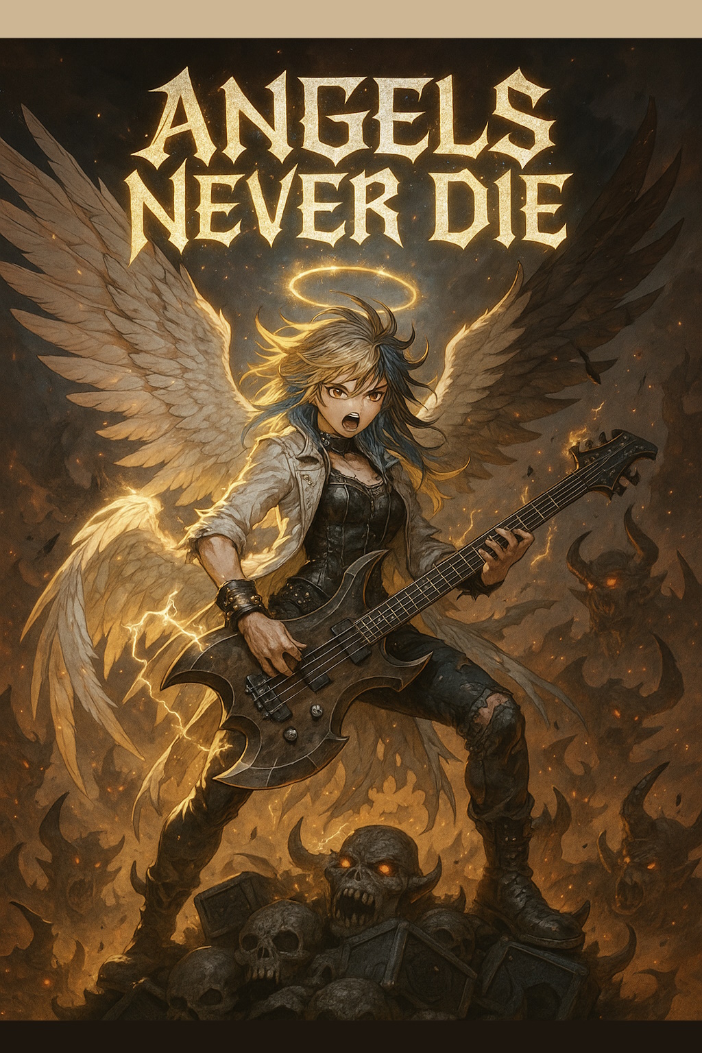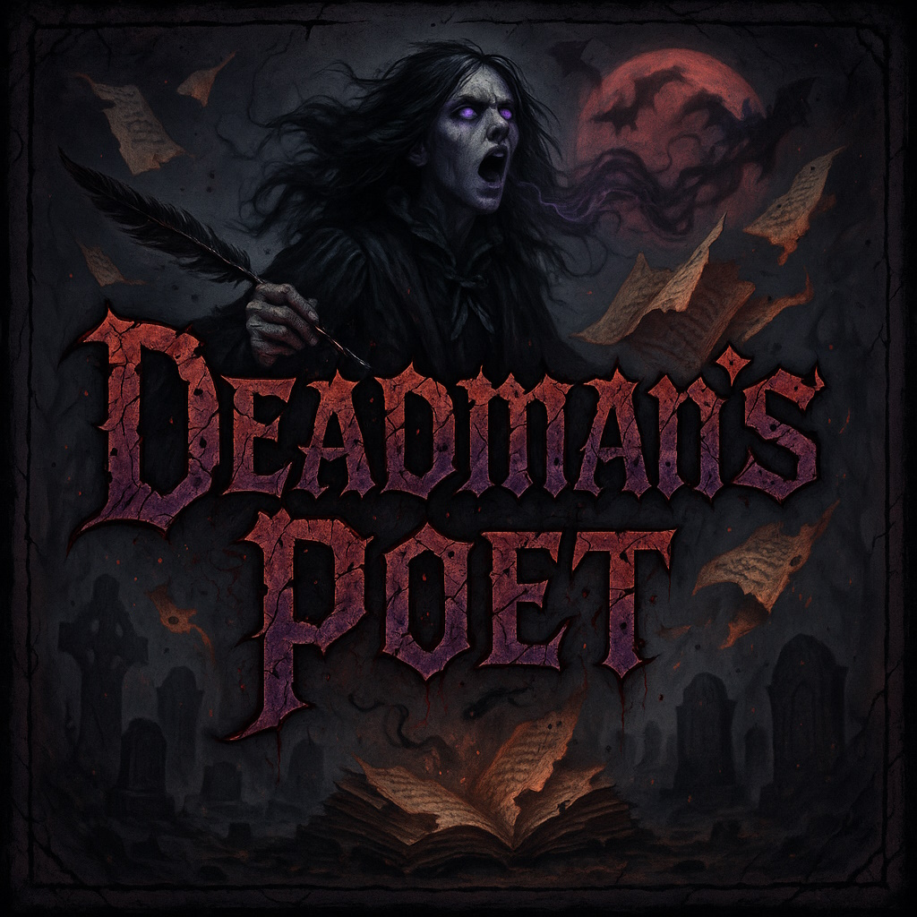 A gothic rock and roll anthem with multi-layered female vocals, blending gritty lead vocals with ethereal backing harmonies and eerie whispers, The lead voice carries a fierce, vengeful tone with a gothic edge, while the background layers echo like ghostly chants and choral curses, The instrumentation includes heavy distorted guitars, pounding drums, and cinematic organ bursts to evoke a cursed and dramatic atmosphere, Occasional whisper effects and low growls enhance the supernatural mood, Tempo is mid-to-fast with driving rhythm sections, thunderous basslines, and sharp guitar solos that cut through like a burning page, Overall tone is dark, cursed, and theatrical, telling the story of a dead poet bound by the devil to destroy all poetry in existence