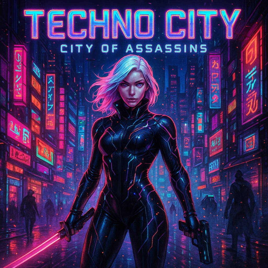 Bass-heavy techno instrumental fused with cyberpunk drill rhythms, Dark alley synths, hard-hitting 808s, glitchy atmospheric textures, and a lurking low-end groove, Builds tension like a stealth op in a glowing rain-soaked city, Designed for a cinematic ambush in the neon-drenched sprawl of a futuristic assassin’s playground