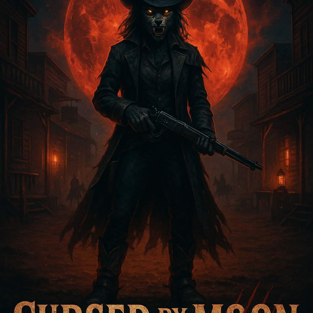 A gritty country rock and rapcore heavy metal fusion driven by fierce female vocals with attitude and soul, Starts with a slow, eerie acoustic guitar and desert wind FX, then kicks into heavy distorted guitars layered with western slide licks, stomping outlaw drums, and deep metal bass, Verses use rhythmic rap-style delivery with raw, snarling tone, while choruses explode into screamed melodic hooks backed by harmonized gang vocals and pounding breakdowns, Midway through, a haunting spoken word bridge builds tension before detonating into a thrash-meets-country solo duel, Sound design includes distant howls, bullet ricochets, and galloping percussion to evoke a cursed Wild West feel, Style is dark, cinematic, and rebellious — like a lone werewolf outlaw tearing across the plains under a blood moon, Final outro fades with a fierce scream, echoing gunshot, and a distant howl