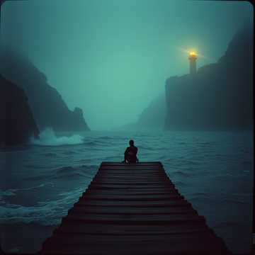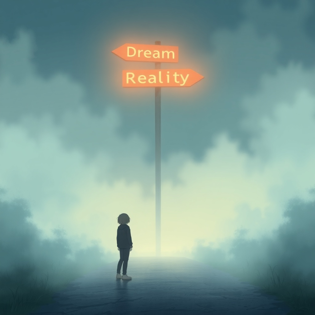 slow, haunting, atmospheric alternative/experimental rock track in D minor, tempo around 65 BPM, Dreamlike electronic textures blend with soft, eerie synths, minimalistic piano, and distant, reverb-heavy guitars with shimmering delay and subtle distortion, creating an ethereal, floating soundscape, Sparse, distant percussion, subtle glitchy elements, and washed-out ambient sounds evoke isolation and melancholy, Male vocals are soft, airy, and ethereal, slightly breathy and distant, with long, drawn-out notes and subtle vibrato, reverberated to feel like they’re floating in space, conveying introspection, melancholy, and dissociation, The mood is cinematic, surreal, and haunting, with tension building gradually, fading in and out like drifting through fog, Keep the tempo slow to mid, with occasional dissonant harmonies and haunting melodic fragments, The chorus should feel slightly uplifting, with a sense of rising, liberation, and light breaking through