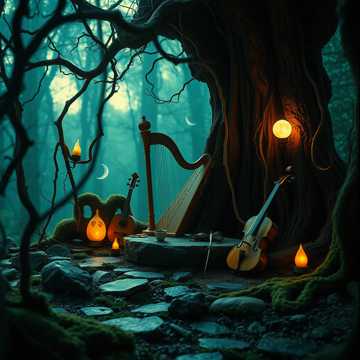recorder, gaelic female chants, recorder, lute, fantasy, forest atmosphere, "wobble master"style