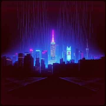 “glitchy cyberpunk anthem with ethereal choirs and heavy bass pulses”