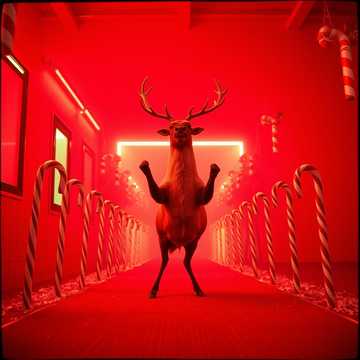 Theme: A Christmas night gone completely off the rails — a wild reindeer in fishnets becomes the ultimate rock fantasy