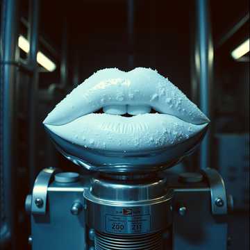 Industrial glam-metal grind kicks in with cold, metallic guitar chugs wrapped in chrome-coated distortion, propelled by a punchy snare and steel-plated basslines, Mechanical drum grooves and processed gang shouts drive heavy glam stomp, while moaning synth overlays and fuzzed power chords ooze sleazy energy, Seductive robotic vocals deliver double-entendre lines with glitchy, processed grittiness, Steel-chain reverb and glitchy breakdowns punctuate the dark festive factory atmosphere, as synths infuse cyber sleaze and swing into the strip-metal groove, layering icy glam attitude with seductive, metallic filth