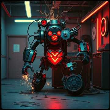 Electropop track with an early‑80s melodic sensibility — bright, catchy synth leads and simple, hooky chord movements, Layer in crusty, overdriven grunge guitars with thick, fuzzy distortion cutting through the mix, Add a deep, saturated bass line that growls underneath the synths, Drums are punchy and mechanical with a slight retro feel, Overall mood: gritty, danceable, high‑energy, and rough around the edges, blending glossy synth pop with raw, distorted guitar noise