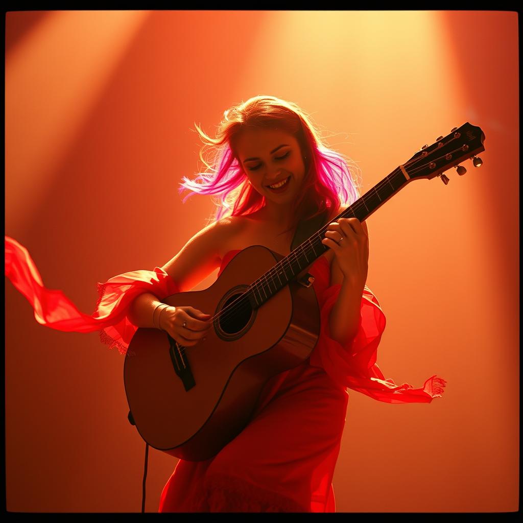 Acoustic guitar punk playing off-beat with stripped down flamenco intro and interludes, minimalist instrumentation (only singer and her guitar), deep, warm and melodic female vocals, singing only the lyrics, hi-fi studio quality