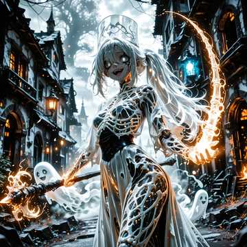 223 bpm, instrumental, dark j-psytrance, dark high-speed downtempo, legato touhou-inspired video game music, catchy dark ambient, spooky melodies, haunting ominous energy, a phantom in white haunts a traveler causing much distress into a miraculous fight to remember