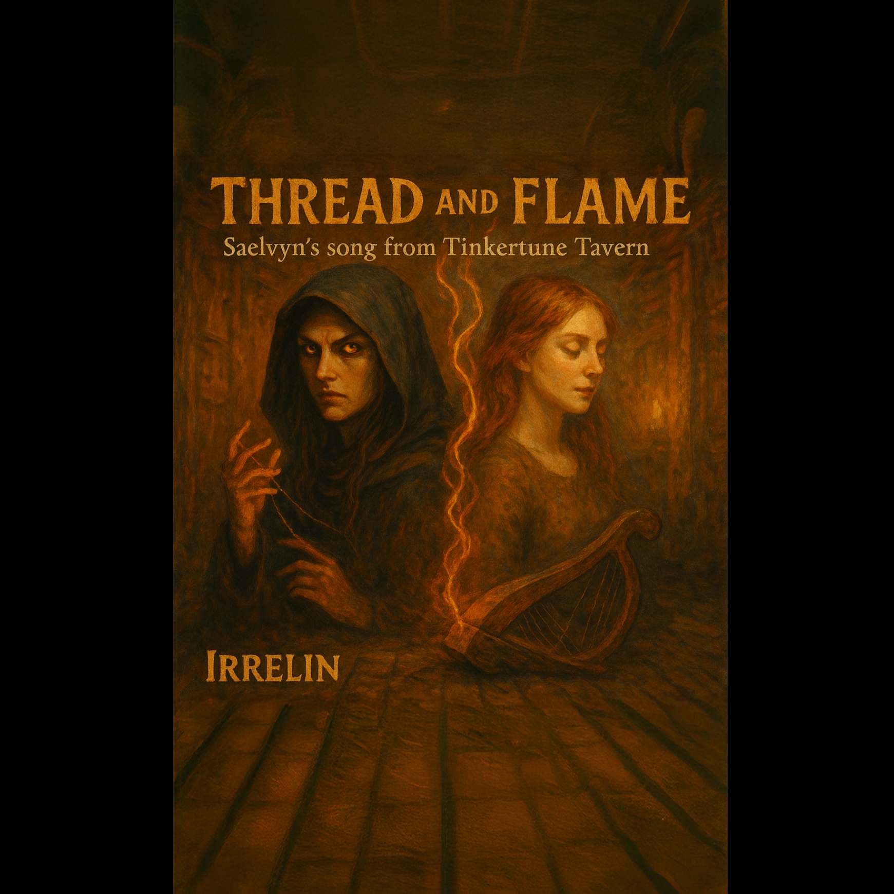 Male Vocal, bardcore, medieval fantasy, lute & flute driven, slow 6/8 rhythm, mystical tone, dark tavern vibe, layered harmonies, whispery backing vocals, minor key, storytelling cadence