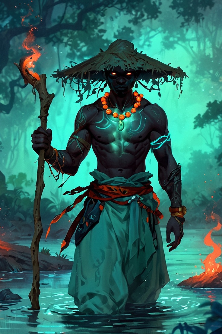 Mystic Ritual Folk, Lo-Fi Jungle Dub, Ethereal Fantasy Ambience, Organic Percussion, Shamanic Pulse, Swampy Textures, Ancient Island Spirit, Shamanic Adlibs & Chants