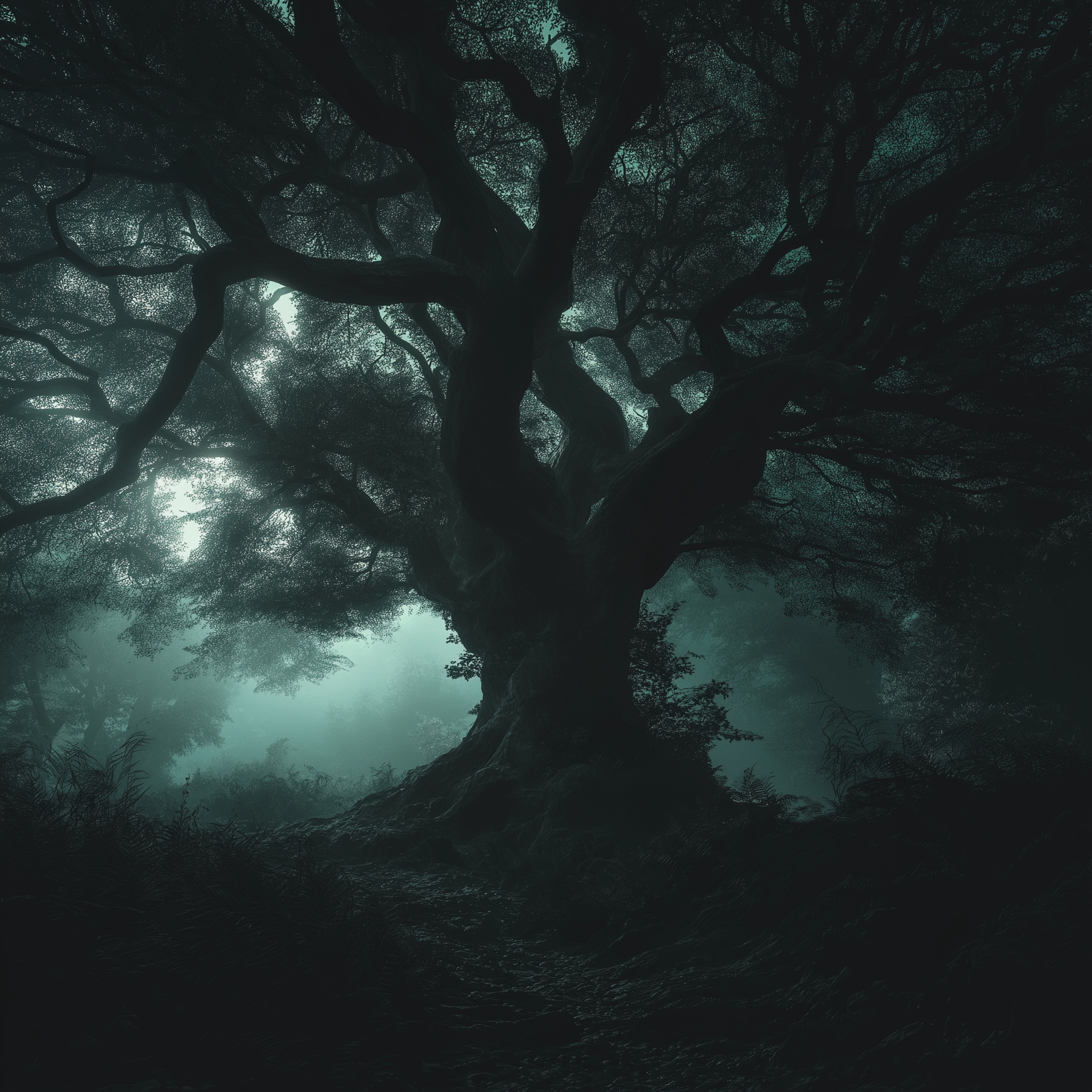 shamanic, forest meditation, distant shamanic female vocals, shamanic singing, shamanic tambourine, sounds of the forest, dark ambient