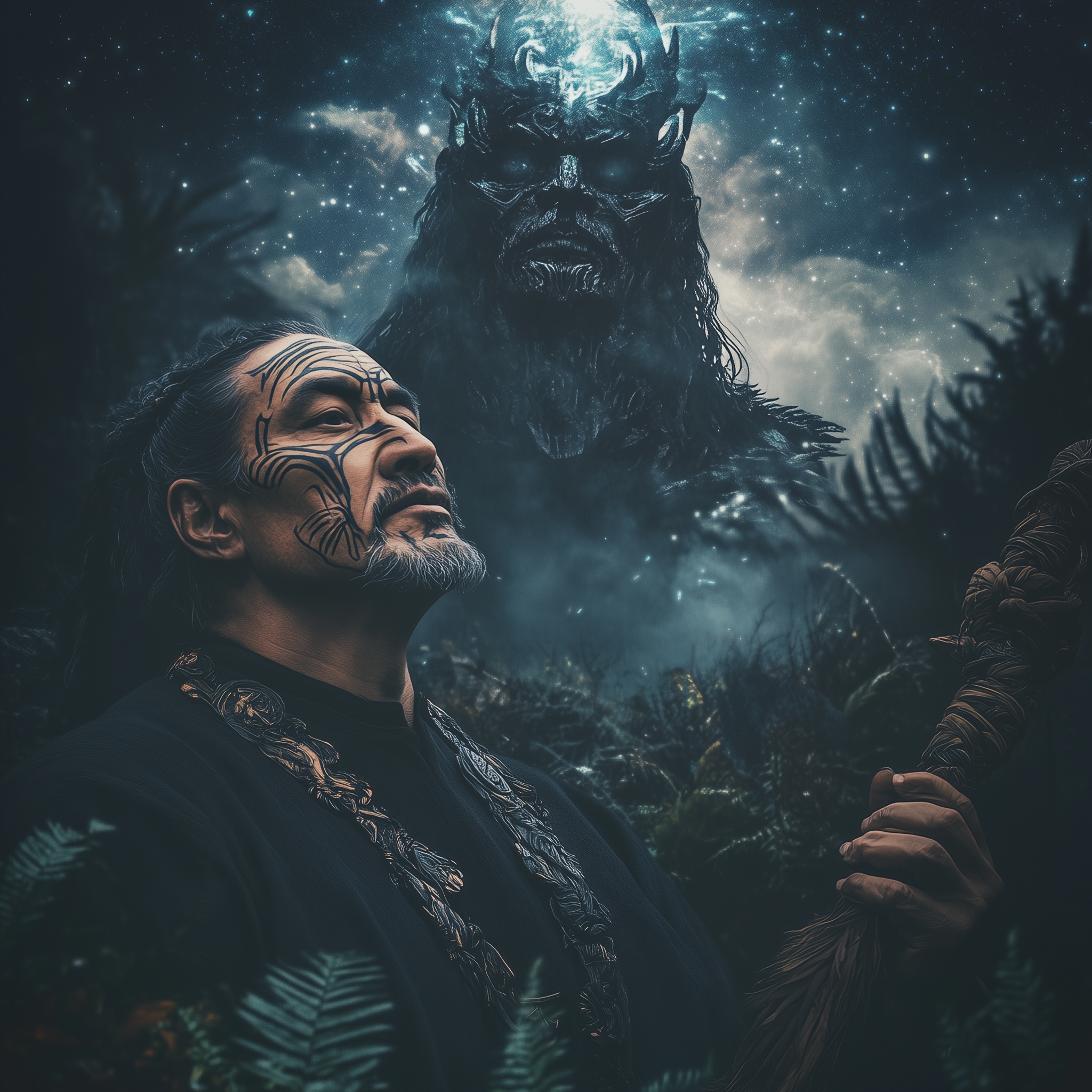 shamanic ritual, runic, ancient, ethereal, mystic, deep resonating, Dark Roots Reggae, Elder Voice, haunting