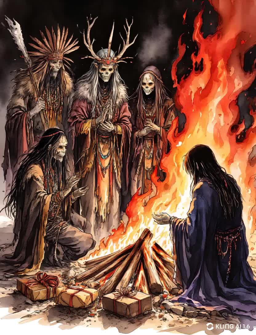[Instruments: frame drum, khomus (jaw harp), soft fire FX, overtone drones, wood percussion, bell shimmer]