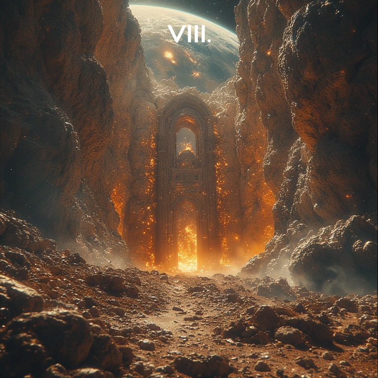 cinematic electronic track that fuses orchestral instruments (piano, cello, double-bass, pipe organ) with modern electronic production: glitchy beats, sub-bass rumble, metallic textures, ethereal pads, The journey should start from darkness/chaos (sparse, low-rumble), build tension with orchestral swells and complex drums, hit a heavy glitch-bass climax, then gradually resolve into a calm epilogue of piano and strings under shimmering ambient light, Mysterious, epic, sci-fi ritualistic mood, Instruments clearly audible, dynamic range wide, modern mix aesthetic