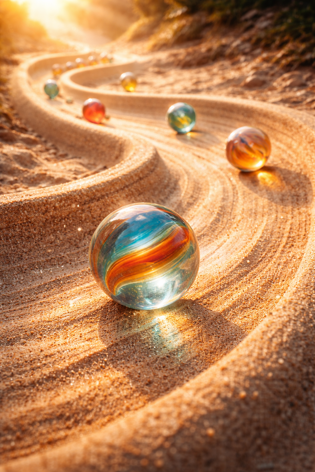 Lush electronic textures intertwine with handpan patterns, introducing warmth via deep melodic synth layers, Understated glitched percussion and a soft, pulsing bass lay a tranquil base, Handpan motifs repeat, while airy arpeggios and detailed ambient effects infuse each section with wistful intricacy