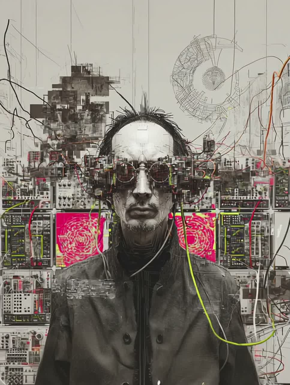 Industrial Percussion, Anvil Sounds, 80's German Industrial Metal, 80's German noise music, Metallic Percussion, Digitalized Balinese gamelan, Buddhist ritual chant, heavy drone, Experimental techno, glitch voice, Robotic effect voice, Choppy vocal, Digital distortion, Bitcrushing, Granular effect, gritch effect, Industrial Drums, Metallic Hits, 80's Analog synthesizers, Industrial Metallic voice, 20th-Century Contemporary Electronic Music, Digital noise, ‑Guitar riff, ‑Heavy Guitar, ‑Scream