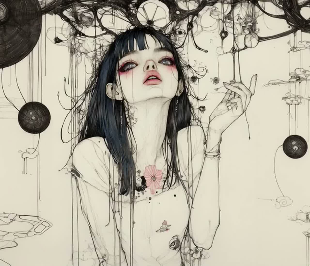20th-century contemporary music, Liquid Drum and Bass, Amen Break, experimental techno, Minimal, 8bit synth, A strange and floating bassline played on a fretless bass, Addictive minimal sequence patterns, digitalized Balinese gamelan music, darkness and inorganic atmosphere, 80's goth, female Bulgarian choir, drone noise ambient, Dream pop, Whisper vocal by young anime girl