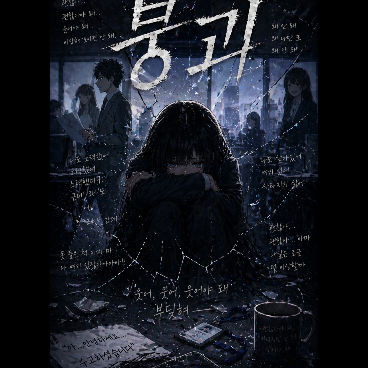 Female vocal, introverted, fragile, socially awkward, anime-inspired emotional delivery, Main vocal style should focus on soft muttering, breathy half-whispers, nervous inner monologue, hesitant phrasing, and subtle instability, The verses should sound like a girl talking to herself under pressure, shy, withdrawn, and emotionally compressed, with occasional cracked tone, Pre-chorus should become more obsessive and breathless, like self-brainwashing under anxiety, Chorus should open into a stronger melodic release but still keep a wounded, strained emotional edge rather than pure power, The contrast is important: quiet muttering in the verses, then emotional expansion in the chorus, In the breakdown, add short bursts of death metal screaming, not constant growling, but sharp, desperate, breaking-point screams like bottled-up stress exploding outward, Final outro should return to exhausted whispering, ending with a sudden scream just before the song cuts, ‑deep mature diva vocals, ‑soulful belting, ‑jazzy phrasing, ‑smooth R&B delivery, ‑sexy seductive tone, ‑confident cool-girl attitude, ‑powerful clean rock belting throughout, ‑bright cheerful idol sweetness, ‑overly cute cartoon voice, ‑childish loli tone, ‑overly polished pop vocal, ‑gospel-style chorus, ‑theatrical musical singing, ‑operatic vocals, ‑husky low-register dominance, ‑stable emotionless delivery, ‑monotone flat phrasing, ‑aggressive rap focus, ‑constant screaming, ‑full harsh metal vocals, ‑long growls, ‑macho vocal texture, ‑warm ballad style, ‑acoustic singer-songwriter feel, ‑vintage retro tone, ‑bluesy inflection, ‑overly realistic conversational tone, ‑masculine resonance, ‑heavy vibrato, ‑overly clean pronunciation, ‑grand cinematic choir focus