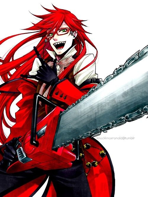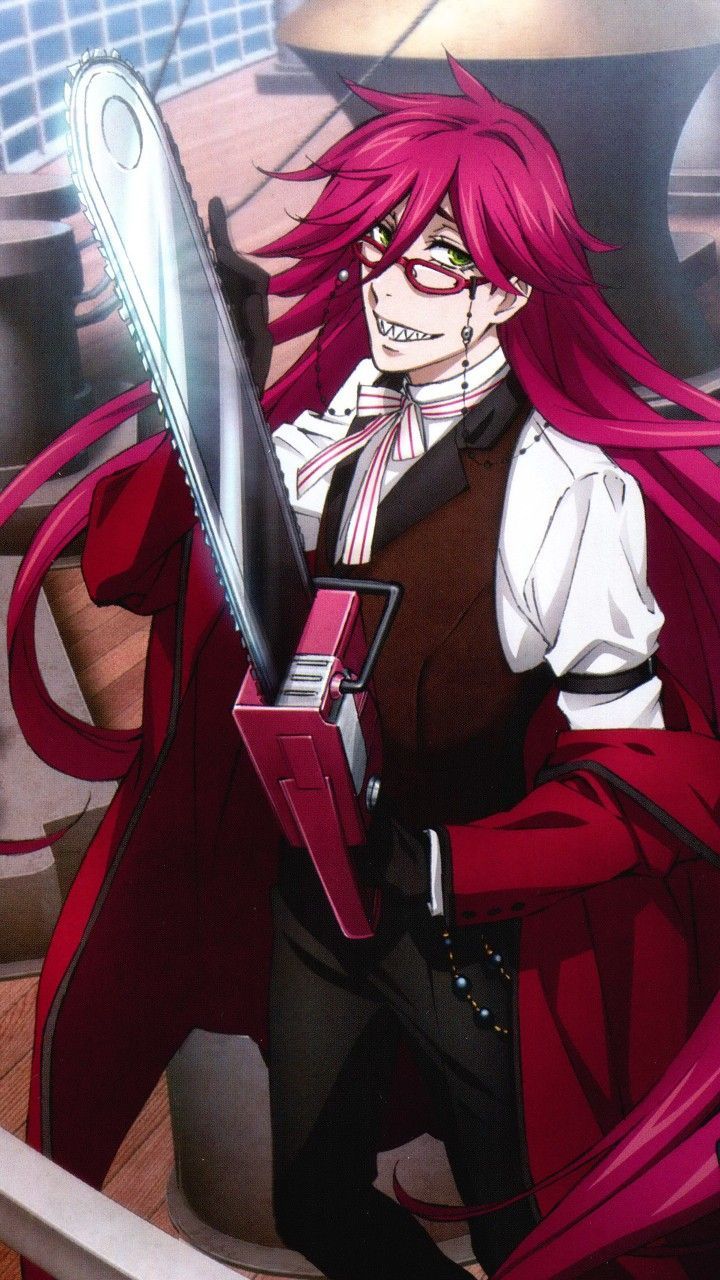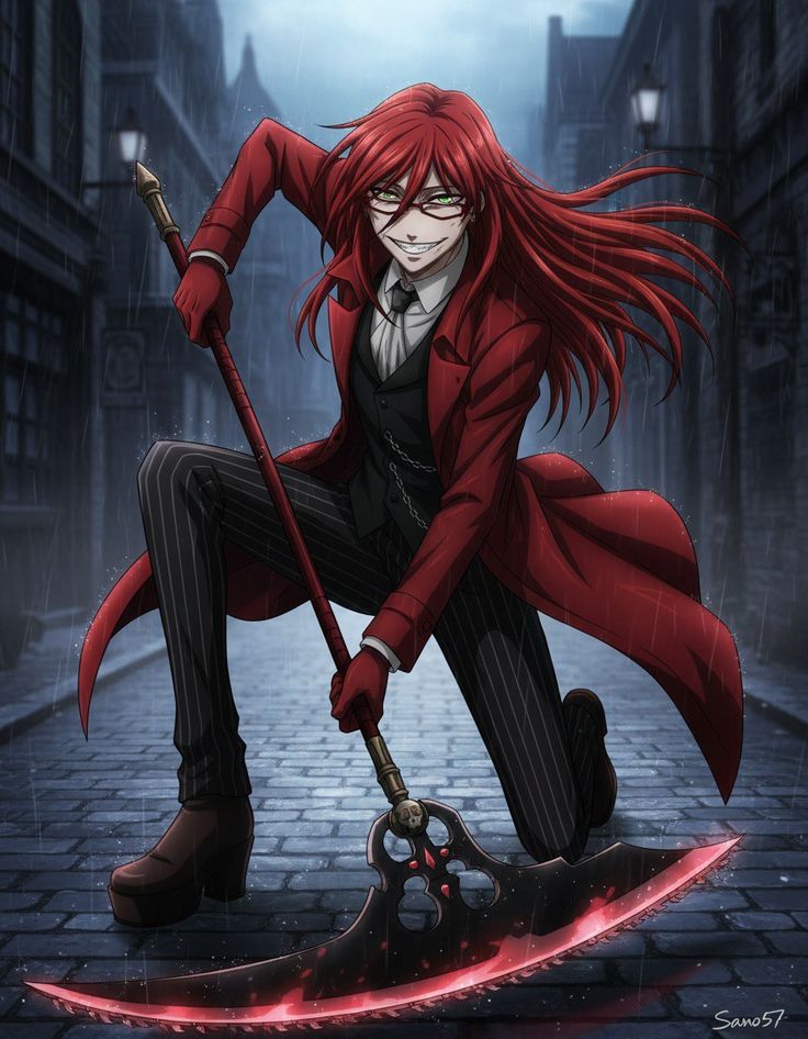 Grell Sutcliff is a flamboyant and dramatic Grim Reaper from the anime and manga series Black Butler, known for their red hair, glasses, and chainsaw scythe, who initially posed as a butler for Madam Red and has a strong attraction to Sebastian Michaelis and William T, Spears, Grell is a trans woman who was a human before committing suicide and becoming a Reaper, and is characterized by their disregard for rules, love of the color red, and violent tendencies, though they are a skilled soul collector, Key characteristics
