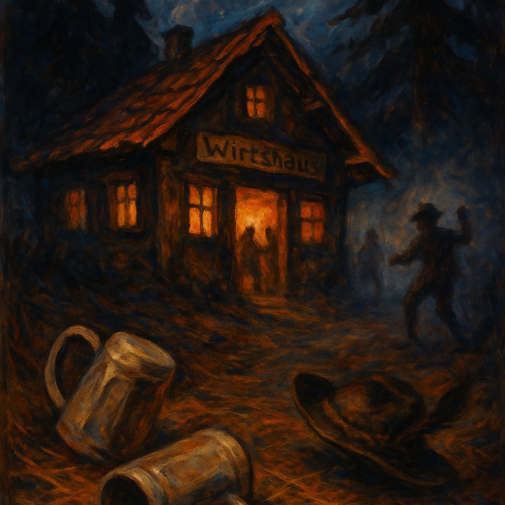 Spoken word dialogue with subtle bar music in background, Bodo: A deep, gravelly, and good-natured baritone, His voice has the warm, rolling melody of a thick Hessian dialect and often booms with hearty laughter, Arthur: A clear, crisp tenor with precise, slightly formal English enunciation, His tone is perpetually polite and bewildered, often rising in pitch with sincere confusion