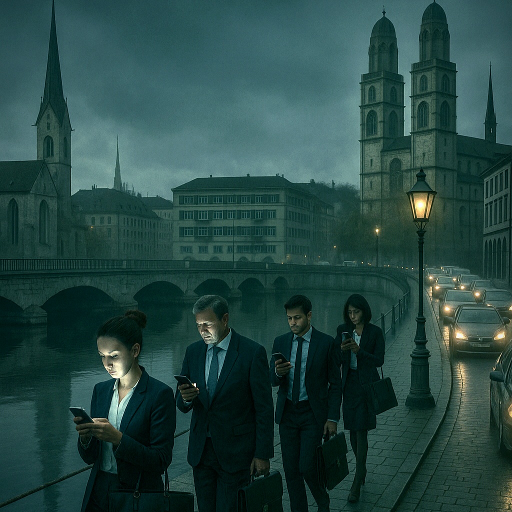 A minimalist, cynical lo-fi trap style, mixed with funk and jazz, saxophone, rooted in the Swiss German (Zurich) dialect, The soundscape is dominated by a cold, sparse beat with nervous, sizzling hi-hats, A unique feature is its integration of urban, everyday sounds like squealing trams or email alerts, creating an authentic yet claustrophobic sonic environment, The rap flow is deliberately lethargic and disillusioned—a monotonous, world-weary delivery that forgoes aggression, Lyrically, the style is a sharp, sarcastic social commentary on the pressure to perform, status anxiety, and the soulless hustle of modern city life in Zurich, The result is a dark, atmospheric, and hyperlocal form of conscious hip-hop