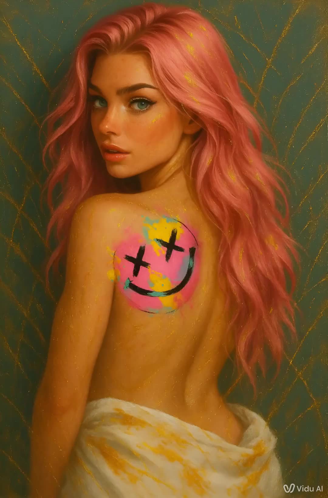 Emo Pop Punk, theatrical breathy vocals, electro waltz, orchestral crescendos, dirty bass, pop guitar, cinematic trumpets, dynamic builds, glitch effects, layered harmonies, Danceable, dramatic flow