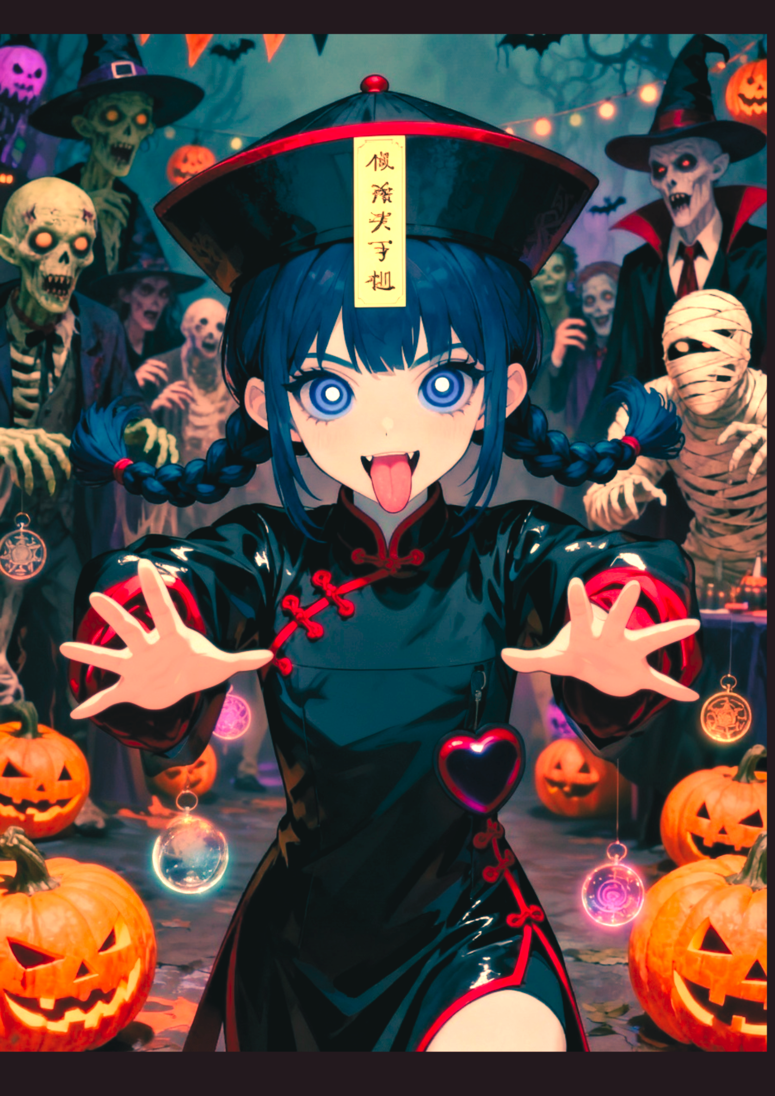 Mood / Vibes: mischievous, theatrical, ominous night, tiny cute 15%