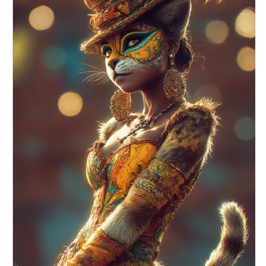 A high-energy Afrobeat à Amapiano à Bollywood fusion parade anthem at 118 BPM (C Major), Built around tabla, dhol, and marching snare percussion, layered with deep sub-bass and four-on-the-floor kick for a lively street-procession groove, Funky wah guitars and sitar melodies trade playful phrases, leading into an [Instrumental only guitarâsitar solo section] framed by crowd chants and brass fanfares, Female lead vocals (playful whisper à confident tone) portray a mystical cat spirit at a Halloween parade, supported by male adlibs (call and response), Bright brass stabs, festival shouts, and meow FX amplify the carnival vibe, Loop-ready mix with vivid transitions and energetic parade flow â a global dancefloor celebration from start to finish