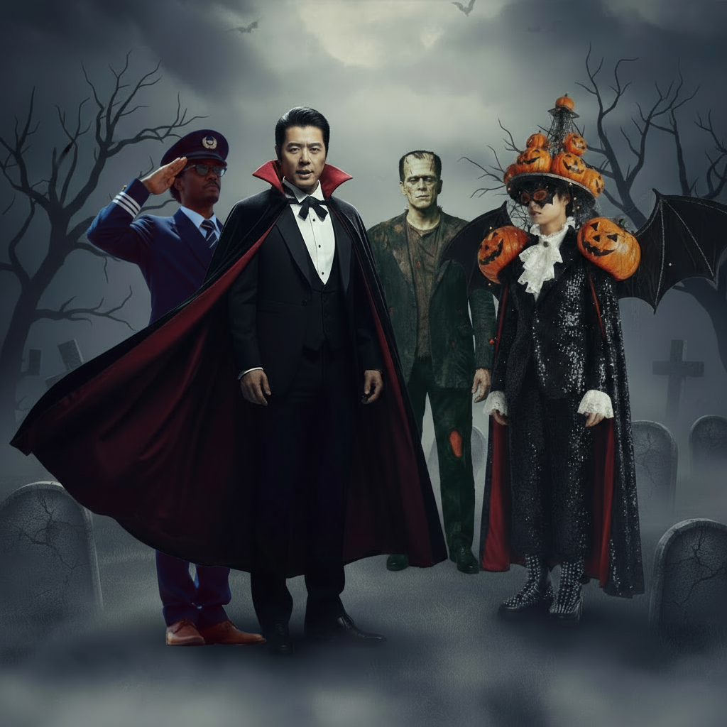 Style: [City Pop + Alternative Pop + Contemporary Pop], retro melody with modern polish, night-time urban elegance, playful word rhythms, Halloween, whimsical English insertions, soft and dreamy, subtle fantasy touch, sophisticated and stylish, smooth vocal phrasing