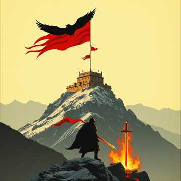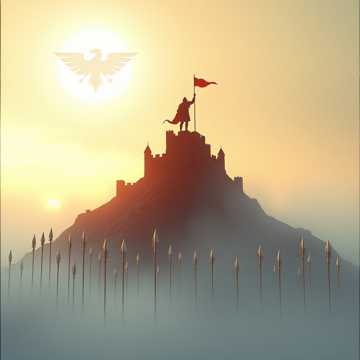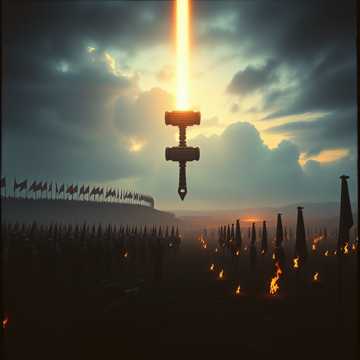 metal, power metal, galloping guitar riffs, thunderous double-bass drumming, epic, and orchestral strings for a dramatic, male vocals, martial atmosphere, layered backing vocals and choir harmonies for added grandeur, driving; male vocals with soaring range, dramatic