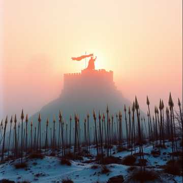 Compose an epic power metal track inspired by historical battles, Use fast tempo (≈150 BPM), heavy distorted guitar riffs, double‑kick drums, and symphonic orchestration with strings and brass, Vocals should be a commanding male baritone with choral backing in the chorus, evoking a war chant, The song should build tension from verse to chorus
