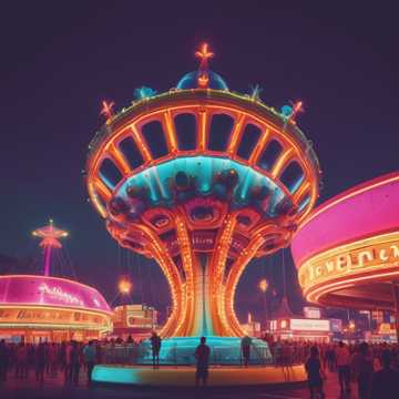 Kermisstem en attractie geluiden, echoing robotica alien voice, bouncy drops, funny sing along song, friendship, terrifying haunting melody lines, happy hardcore, cartoonsounds, reagea-rap, looping, shufflin, echoing voices, 90's masterboy style, super bass, punchy kicks, punchlines, techno, clear bright catchy powerful chorus, 4 by 4 beat, 180bpm, reverse bass rolls, hard beat drops, hard drum kicks, dolby surround, professional polished live recording, studio quality soundeffects, whistling, monster-bass-tuba, dynamic flow, punchy kicks, punchlines, dynamic shifts