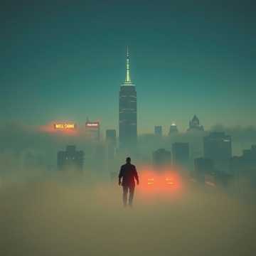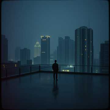 Cinematic urban score with brooding strings over a pulsing trip-hop groove, Low brass stabs, ambient guitar swells, and distant vocal chops create a sense of cold city sprawl, Build slowly from sparse percussion and bass drones into a tense, driving midsection, then pull back to a haunting, lonely outro, theme