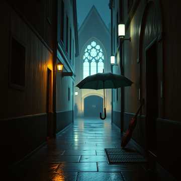 Moody orchestral-meets-urban score, male vocals optional as distant ad-libs, Slow build from lonely strings and upright bass into a swaggering groove with brushed kit, muted brass stabs, and tremolo guitars, Reverb-heavy snare hits and echoing percussion create a cinematic, street-saga feel, Hook is carried by a haunting string motif doubled by vibraphone; arrangement breathes with dropouts then swells back in for a wide, dramatic finish, theme